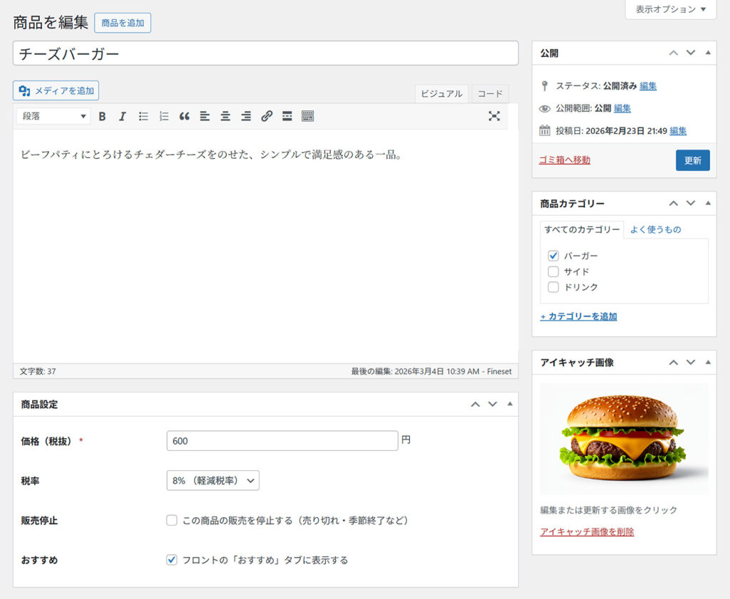 | アイキャッチ画像 | 注文フォームに表示される商品写真 |
